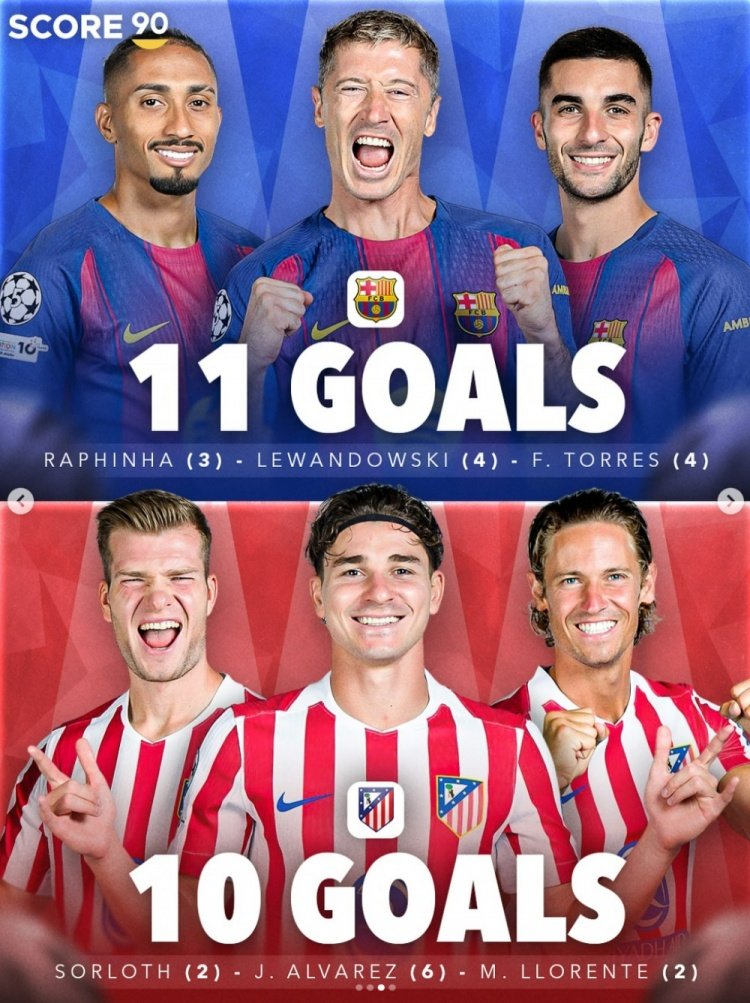 9月30日讯 Score90盘点了五大联赛球队三人组本赛季目前在各项赛事进球榜,其中拜仁三将共打进23球居首,具体如下:
