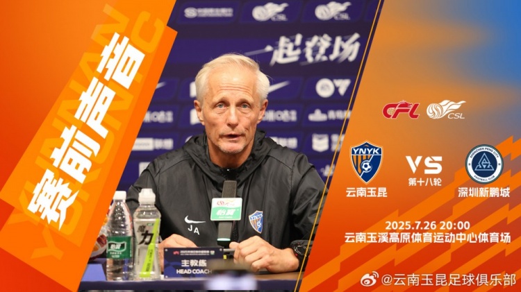 2025华润饮料中超联赛第18轮,云南玉昆将继续主场作战,对阵深圳新鹏城#。今天下午云南玉昆主教练约恩·安德森与球员代表张祥硕参加了赛前新闻发布会。
