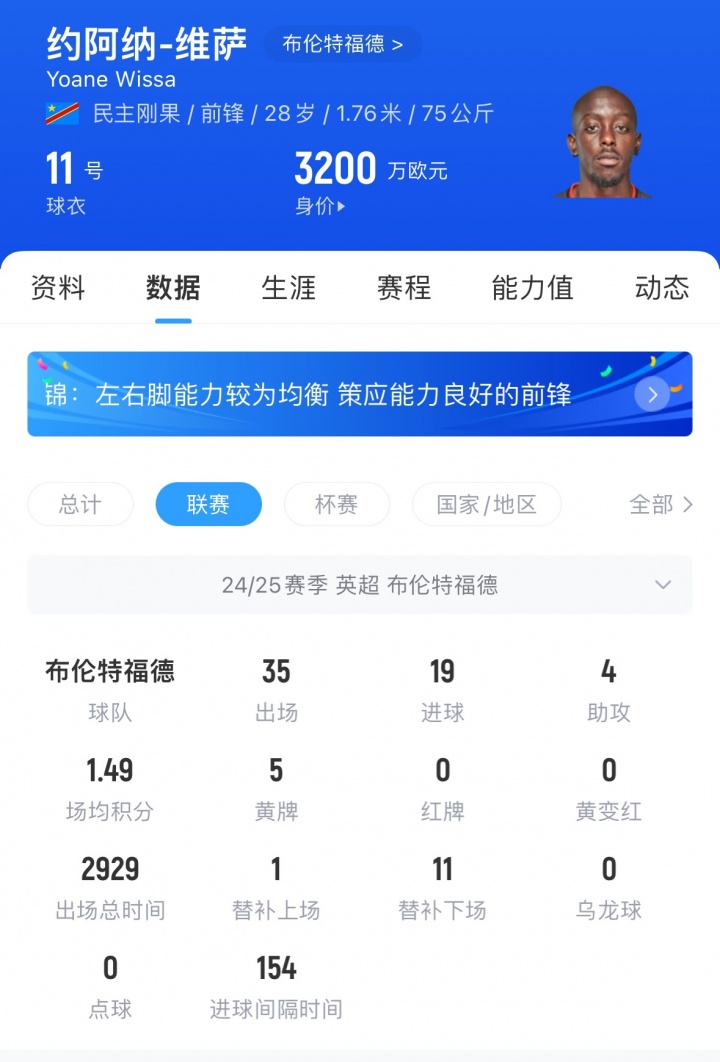 28岁的维萨还有1年合同,球员24-25赛季39场20球4助攻,德转身价3200万欧。