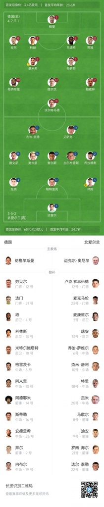 09月08日讯 北京时间02:45,世预赛欧洲区小组赛A组第6轮,德国主场对阵北爱尔兰,赛前首发阵容出炉!