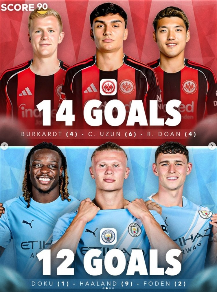 9月30日讯 Score90盘点了五大联赛球队三人组本赛季目前在各项赛事进球榜,其中拜仁三将共打进23球居首,具体如下: